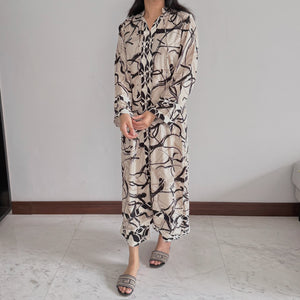 White and brown printed sets includes a short shirt and skinny shalwar with scallop detailing.
